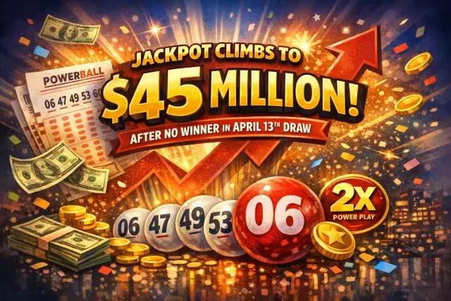 No ticket matched all six numbers in the April 13, 2026 Powerball drawing, extending the jackpot rollover streak and pushing the top prize to an estimated $45 million. The winning numbers drawn were 06, 47, 49, 53, and 60, with a red Powerball of 06 and a Power Play multiplier of 2X. While the grand prize went unclaimed, the draw produced one second-tier winner and distributed prizes across hundreds of thousands of lower-tier entries.